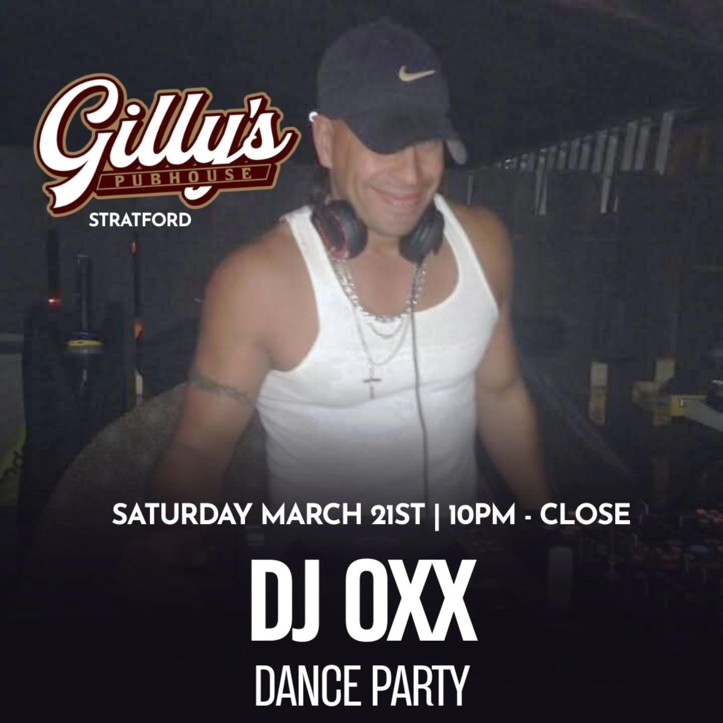 DJ OXX Dance Party Come out for the DJ OXX Dance Party from 10pm until close. + Add to Google Calendar + iCal / Outlook export Date Mar 21 2026 Time 10:00 pm Location Gilly's Pubhouse 92 Downie Street, Stratford, Ontario Category Music Stratford After Dark Organizer Gilly's Pubhouse Phone 519-271-3939 Email gillyspubhouse@gmail.com Website https://www.facebook.com/GillysPubhouse
