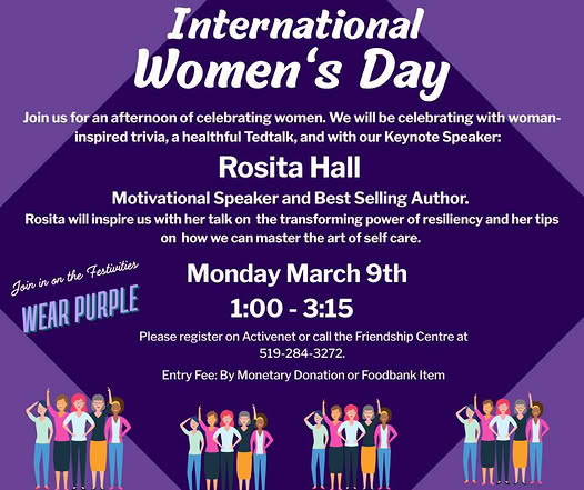 Join us on Monday March 9th and celebrate International Women’s Day at the Friendship Centre!