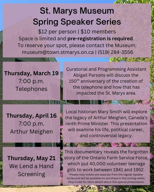 These engaging evenings always fill fast – pre-register by emailing museum@town.stmarys.on.ca or call 519-284-3556. A waitlist is available for sold-out sessions.
