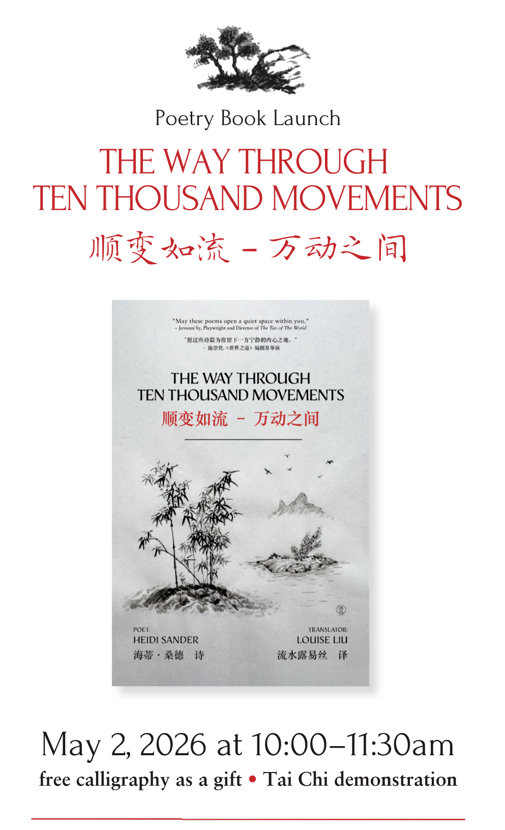 Welcome to all who are interested in poetry, culture, and mindful movement. Join us for the launch of a poetry collection by award‑winning local poet Heidi Sander, presented in an English–Chinese translation. Inspired by Tai Chi and Taoism, these meditative poems explore cycles of returning, reshaping, and becoming.