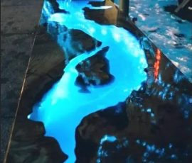 The RIVER LIGHT public art bench will bring joy and wonder to the simple act of sitting. The live edge wood represents the banks of the Avon River while the semi-translucent epoxy is cleverly lit from within, causing the river to come to life and glow with brilliant colour. Burnt Brydges Wood Co.